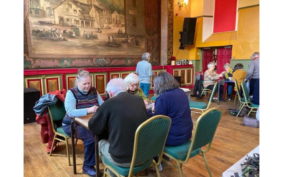 A request was sent to previous volunteers to make them in their home country. Alison saw this as a golden opportunity for people in Settle to contribute. The technique is simple - weaving small strips into a net, which is afterwards removed from the frame and tied with elastic. All that is required is time and a supply of materials. A group has been formed, including many people with crafting skills as well as those less experienced, who are aiming to make at least 100 helmet covers for Ukraine.