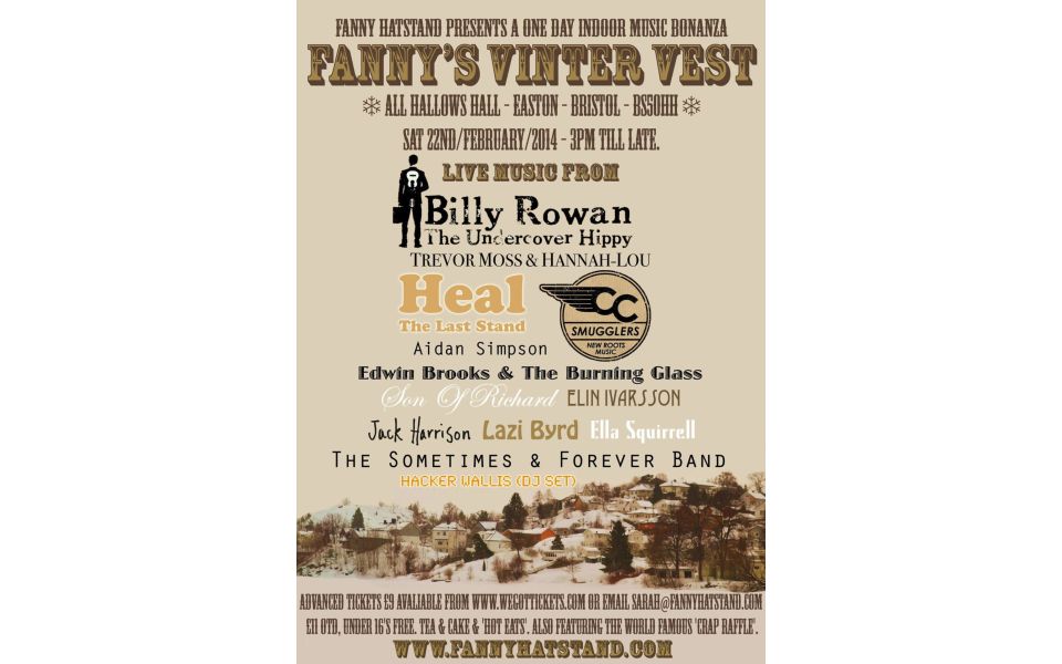 A selection of the live music events we hosted - Honeyfeet - Toy Face - The John Langan Band - Cut Capers - The Turbans - Fitty Gomash - Buddy Wakefeild - Kath Bloom - Kit Hawes - Toby Hay - The Fantasy Orchestra - Widerman - Emily Breeze - Leonie Evans - Bristol Community Big Band - Bristol Reggae Orchestra - LTJ Bukem - DJ Pinch - Rita Lynch - Johnny Vistic - Jim Ghedi - Spindle Ensemble - Imran Khan - MC Conrad - Velcro Hooks and many more.