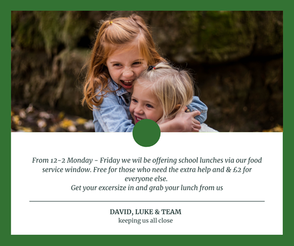 From Monday 11th January 2021, The Crown is offering School Lunches. There will be a choice of meals, including vegetarian and gluten-free - the lunches are free for those that need a bit of extra help, donation for those that can.