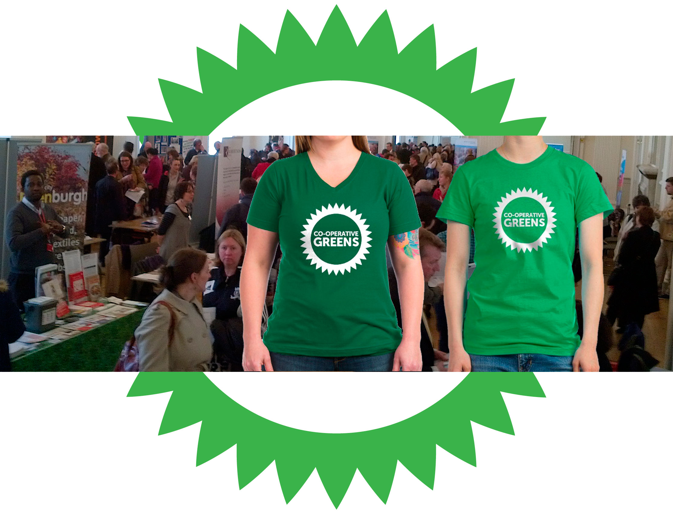 REDUCED COST: If you donate at least £30, you qualify for a green t-shirt with the Co-operative Greens logo in white.