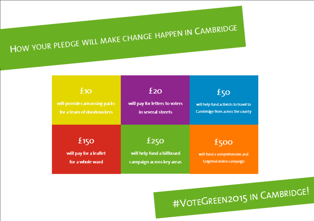 This money will help us get more activists to Cambridge. Thank you - you've just helped promote Green values!