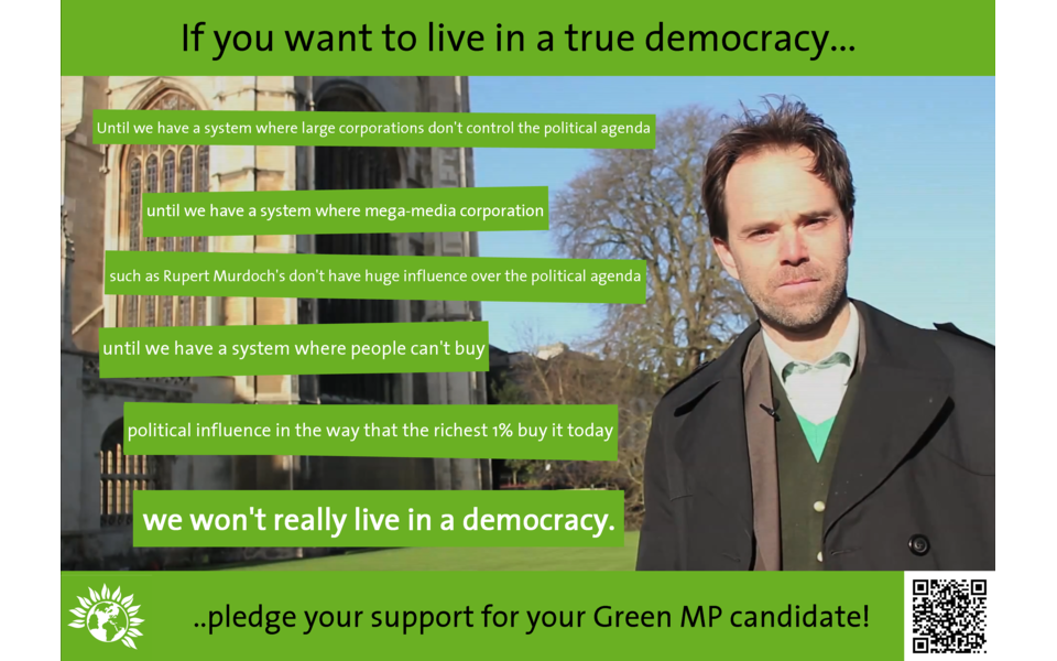 Your pledge will mean we can target the Green message to the buzzing online community. We can put together a comprehensive media campaign, which could sky rocket the Green surge in Cambridge! You, along with a guest, are invited to join Rupert and other key Green activists for the post-election dinner and drinks party in Cambridge where you'll receive a signed copy of The Post Growth Project.